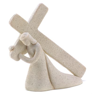 - Sandcast Jesus and Cross Figurine. Elegant semi-abstract sculpture depicts a timeless scene of inspiration as our Savior bravely bears his burden. A stunning combination of spiritual tribute and modern art mastery!