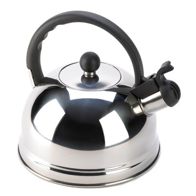 - Stainless Steel Tea Kettle. Stovetop kettle heats up quickly, allowing you to brew up your favorite beverage to savor and share. With its bright chrome finish and cheery whistle, it’s sure to become a part of your treasured tea-time tradition!